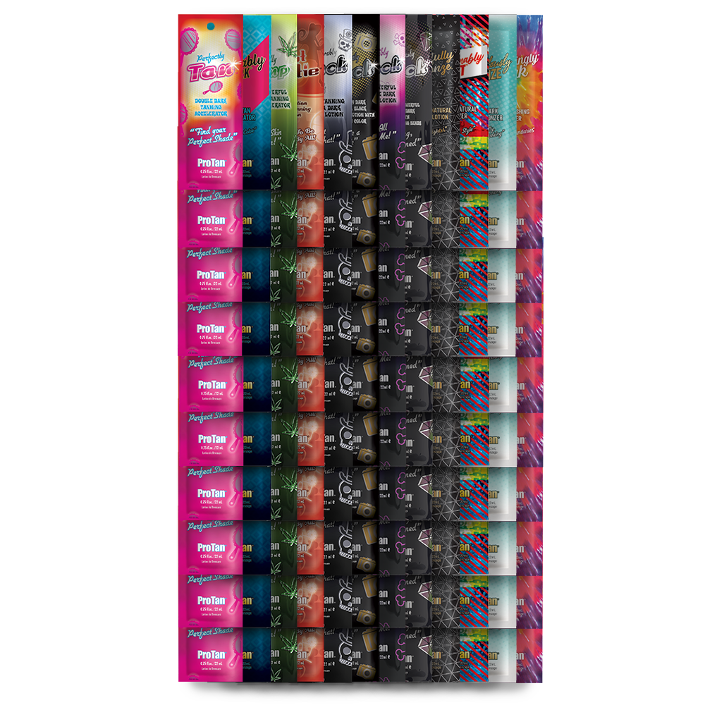 10 x Perfectly Tan 22ml, 10 x Desirably Dark 22ml, 10 x Radically Hemp 22ml,